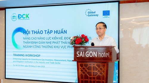 Tiếp theo Hội thảo cập nhật, phổ biến các quy định của pháp luật về giảm nhẹ phát thải khí nhà kính và ứng phó với BĐKH ngành Công Thương ngày 18/11/2025 tại Hà Nội, ngày 9/12/2025 tại TP.HCM, Cục Đổi mới sáng tạo, Chuyển đổi xanh và Khuyến công (Cục ĐCK) đã tổ chức Hội thảo tập huấn hướng dẫn Quy định kỹ thuật đo đạc, báo cáo, thẩm định giảm nhẹ phát thải nhà kính và kiểm kê khí nhà kính ngành Công Thương năm 2025 cho các đơn vị, địa phương khu vực phía Nam.