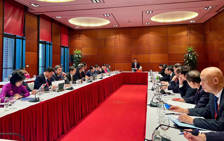 Bộ trưởng Bộ Tài chính Nguyễn Văn Thắng làm Tổ trưởng Tổ thảo luận số 7 - Ảnh: VGP/Phương Liên