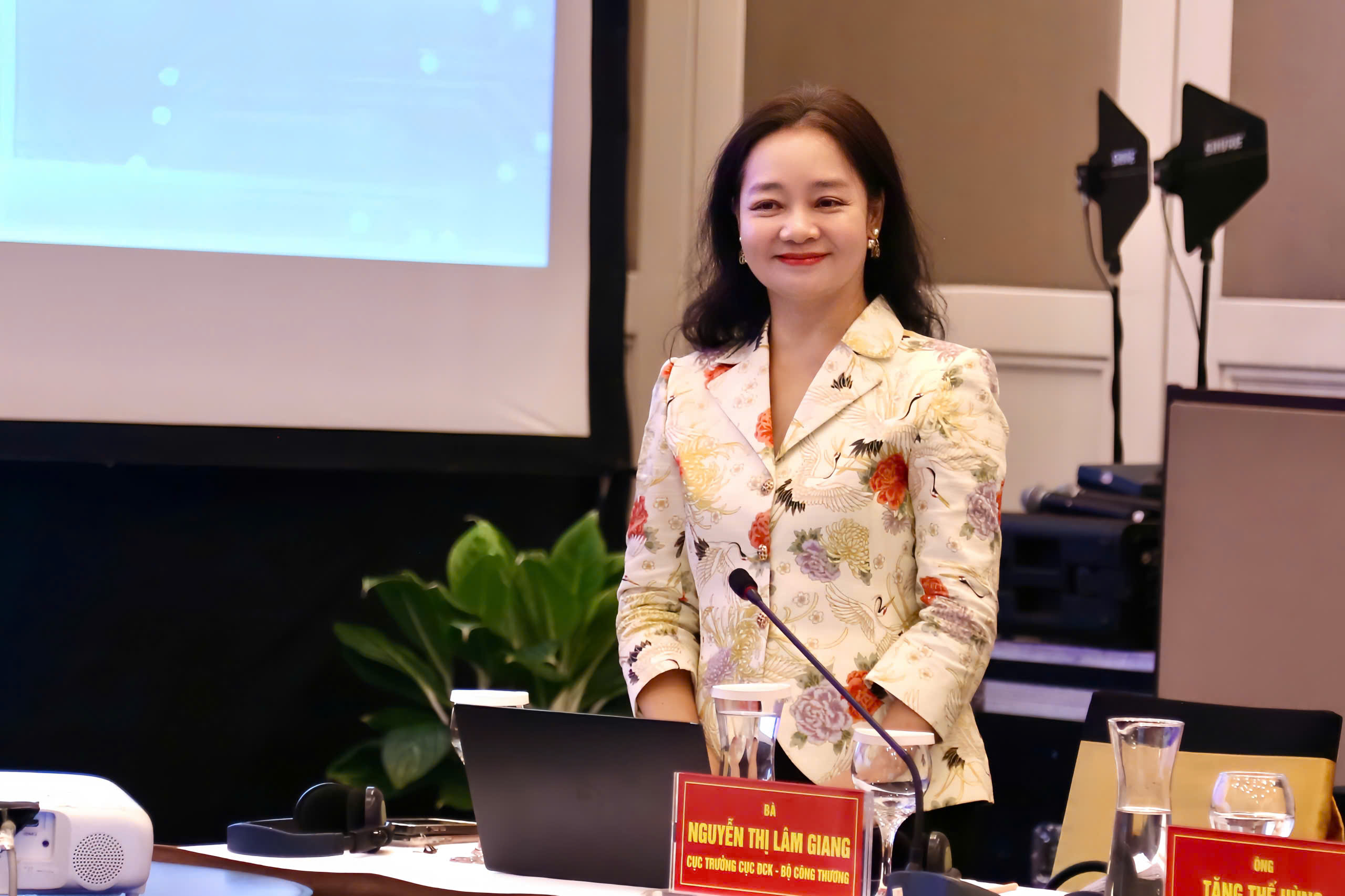 Bà Nguyễn Thị Lâm Giang - Cục trưởng Cục ĐCK (Bộ Công Thương) cập nhật tình hình triển khai JETP và đề xuất những nội dung cần triển khai theo Nghị quyết 70.
