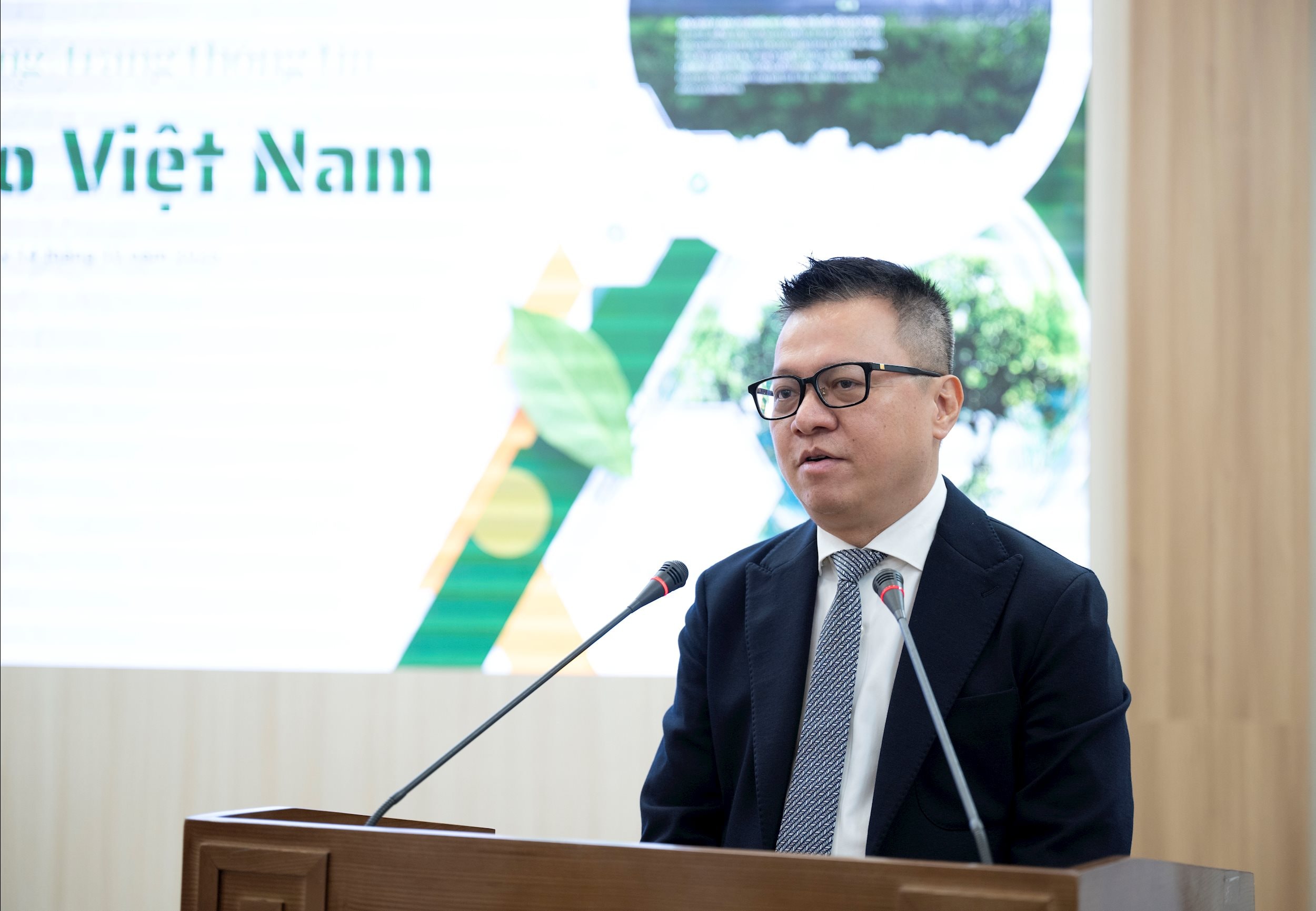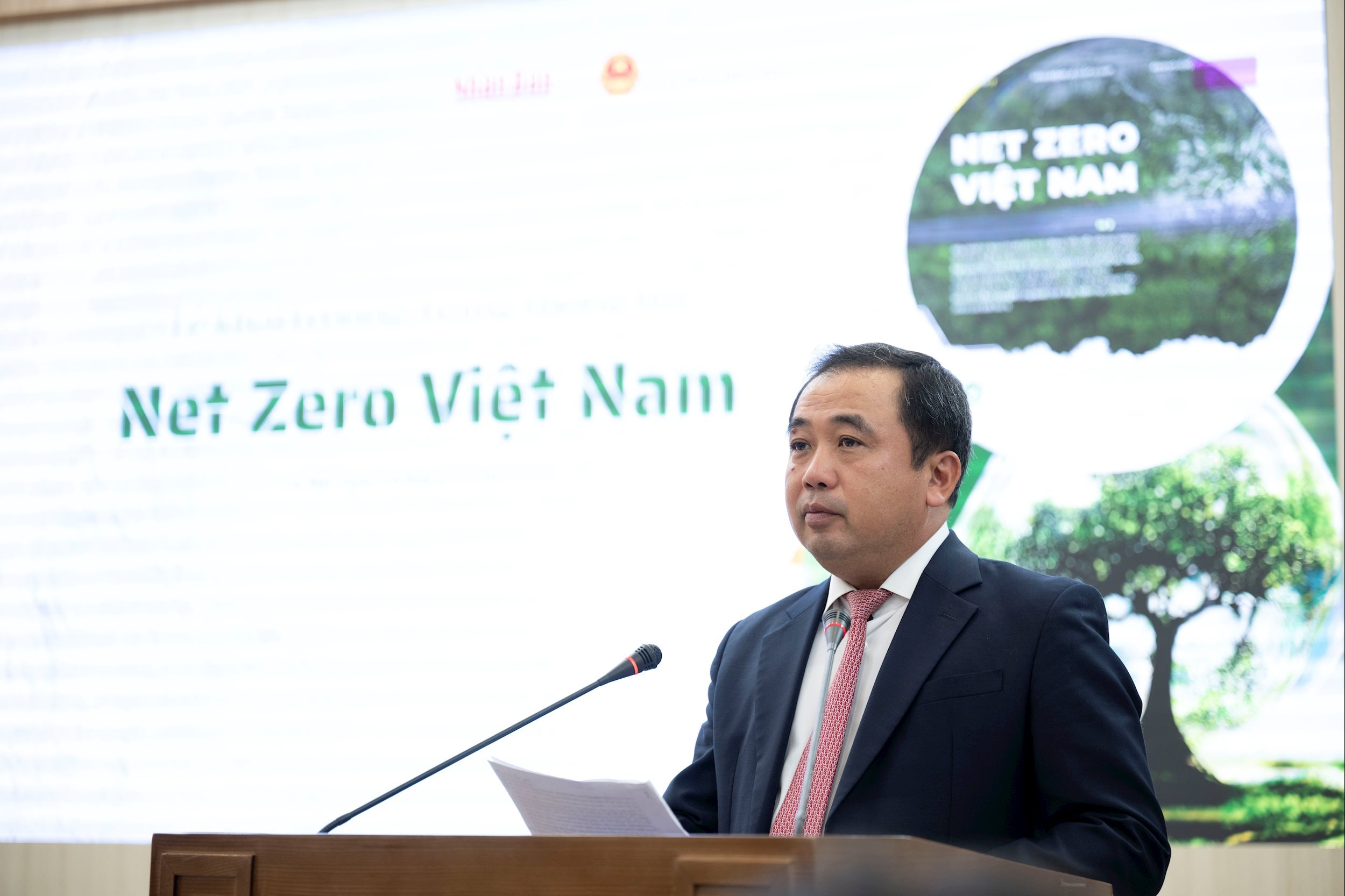 Quyền Bộ trưởng Bộ Nông nghiệp và Môi trường Trần Đức Thắng phát biểu tại Lễ ra mắt chuyên trang “Net Zero Việt Nam”.