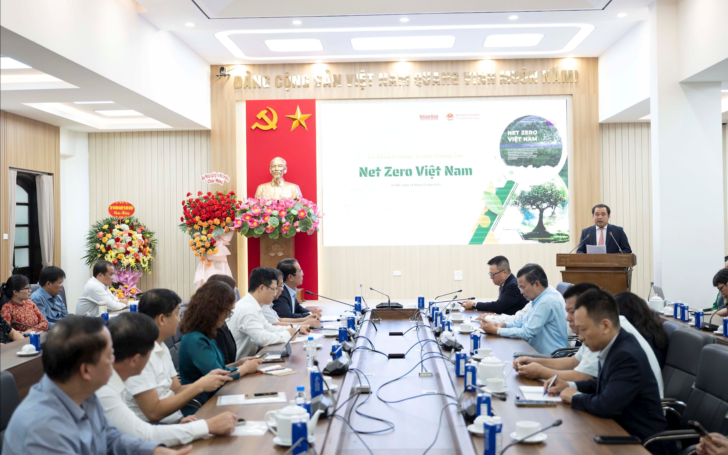 Phát biểu tại Lễ ra mắt, Quyền Bộ trưởng Bộ Nông nghiệp và Môi trường Trần Đức Thắng cho biết, Bộ Nông nghiệp và Môi trường và cá nhân Bộ trưởng rất vui mừng cùng Báo Nhân Dân khai trương Trang thông tin Net Zero Việt Nam. Đây là sáng kiến phối hợp quan trọng của hai cơ quan, đánh dấu bước tiến mới trong chiến lược truyền thông - hành động - kết nối vì mục tiêu đạt phát thải ròng bằng “0” vào năm 2050 như đã cam kết, mang lại cuộc sống tốt đẹp cho người Việt Nam.