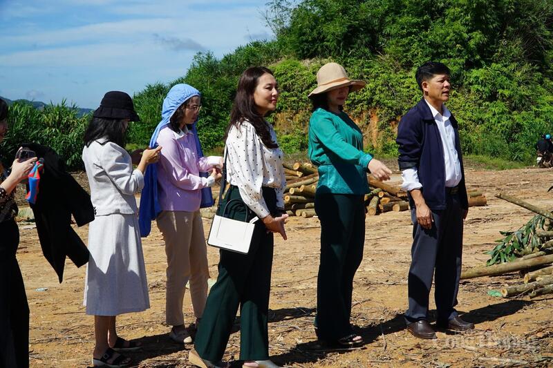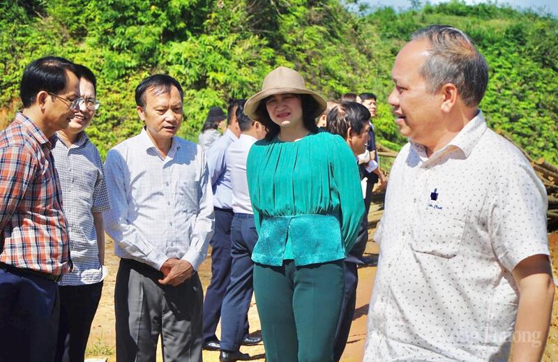 Thứ trưởng Bộ Công Thương Phan Thị Thắng kiểm tra một khu vực ở địa bàn xã Tà Đùng. Ảnh: Vũ Long