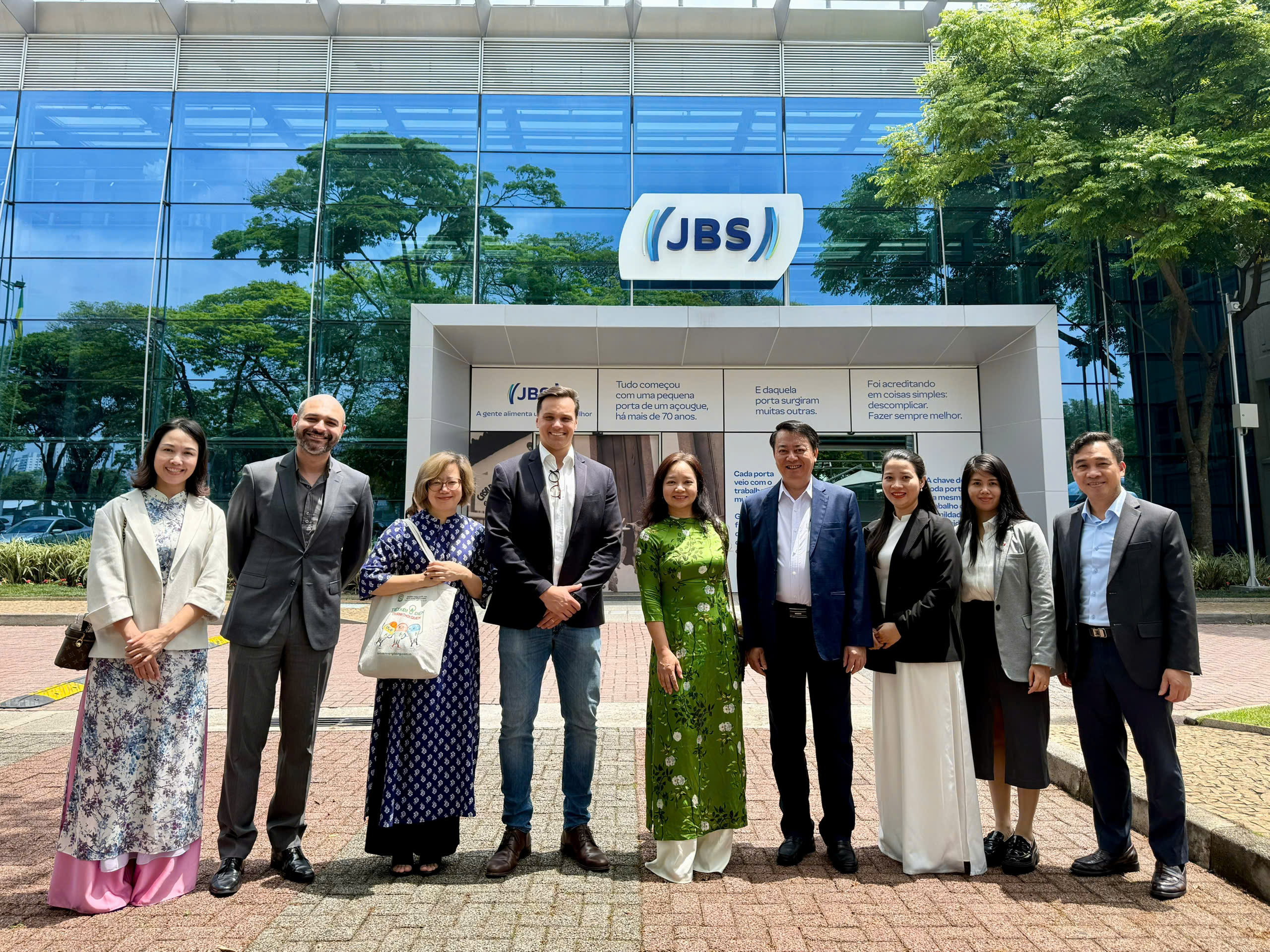 JBS là tập đoàn hàng đầu thế giới chuyên về sản xuất và phân phối thịt gia súc, gia cầm, và các sản phẩm thực phẩm liên quan. JBS có trụ sở chính tại Brazil, 600 nhà máy và văn phòng đại diện tại 25 quốc gia và vùng lãnh thổ với khoảng 280.000 lao động. Các thương hiệu nổi bật của JBS tại các thị trường là: Friboi (thịt bò), Seara (gà & heo), Swift (Brazil); Pilgrim’s Pride, Plumrose (Hoa Kỳ); Moy Park, Primo (Châu Âu); Primo, Swift (Úc). Sản phẩm của JBS xuất khẩu tới hơn 190 quốc gia và vùng lãnh thổ với doanh thu gần 70 tỷ USD vào năm 2024. Trong khung khổ chương trình làm việc, đại diện Lãnh đạo Tập đoàn JBS đã đưa đoàn công tác đi khảo sát và giới thiệu tổng thể mô hình hoạt động.