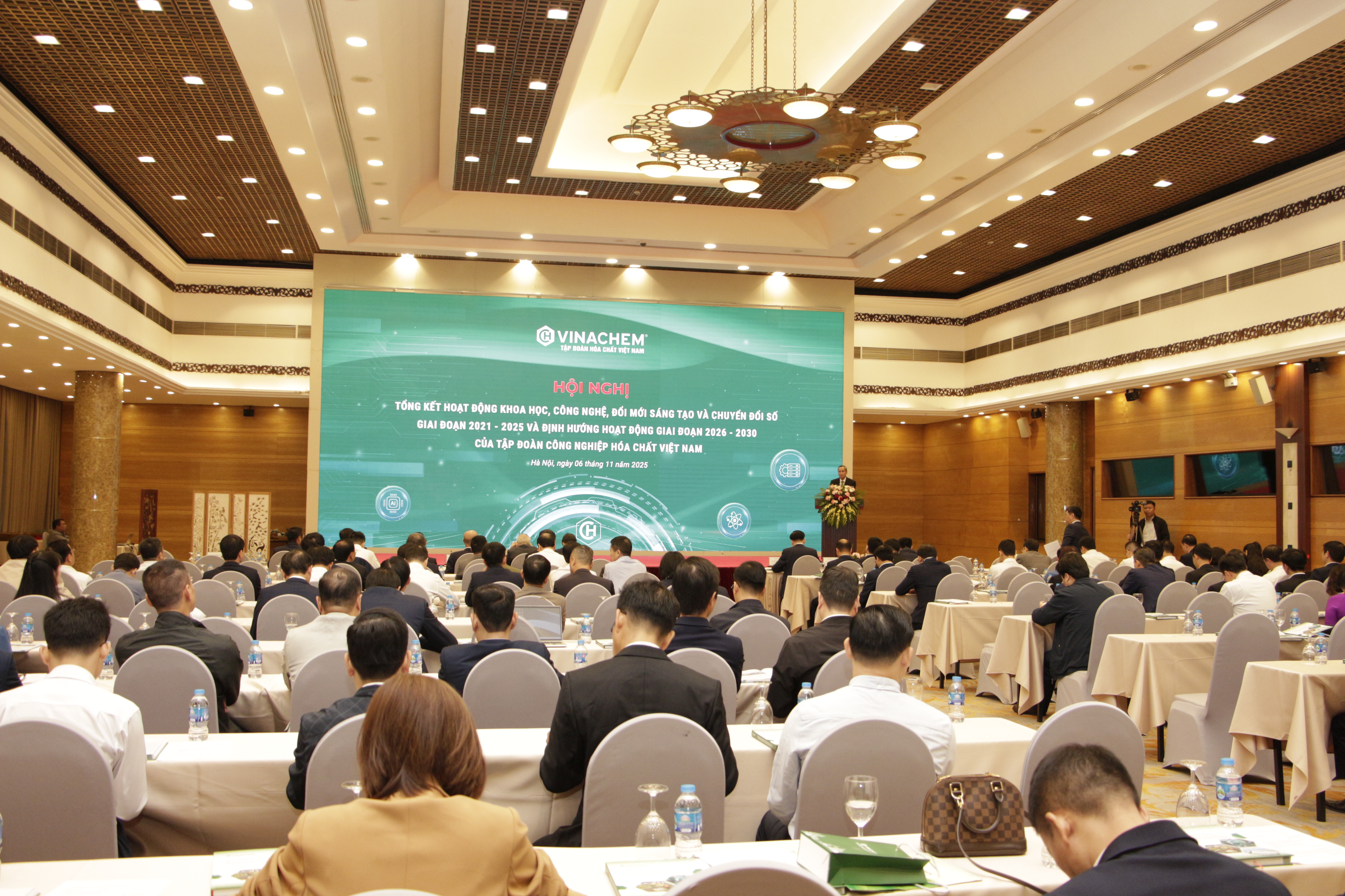 Báo cáo tại Hội nghị, ông Phùng Ngọc Bộ - Trưởng Ban kỹ thuật Tập đoạn cho biết: Trong giai đoạn 2021–2025 đánh dấu bước chuyển mình mạnh mẽ của Vinachem trong ứng dụng khoa học công nghệ vào sản xuất, kinh doanh. Dù chịu tác động của dịch bệnh Covid-19 và nhiều biến động của thị trường trong nước và quốc tế, Tập đoàn vẫn duy trì ổn định hoạt động sản xuất, đồng thời đẩy mạnh triển khai các chương trình nghiên cứu, đổi mới công nghệ. Trong 5 năm qua, toàn Tập đoàn đã thực hiện 42 đề tài và dự án khoa học công nghệ, cùng hơn 3.700 sáng kiến cải tiến kỹ thuật. Các hoạt động nghiên cứu và đổi mới sáng tạo tập trung vào mục tiêu nâng cao năng suất, tiết kiệm năng lượng, sử dụng hiệu quả tài nguyên, giảm phát thải và bảo vệ môi trường.