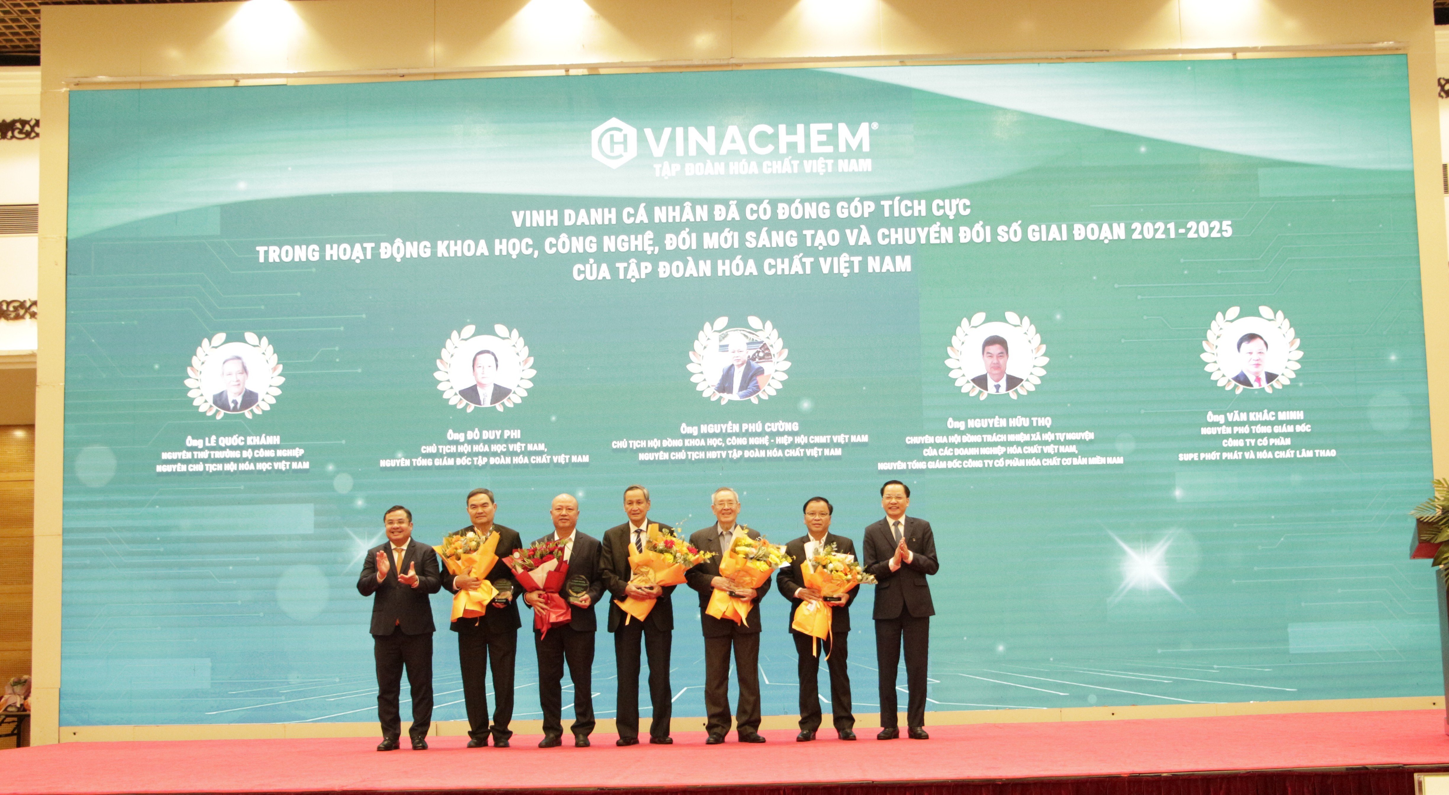 Tại Hội nghị, Vinachem cũng ghi nhận và biểu dương các tập thể, cá nhân có thành tích xuất sắc trong hoạt động khoa học công nghệ, đổi mới sáng tạo và chuyển đổi số giai đoạn 2021–2025. Đây là những tấm gương tiêu biểu thể hiện tinh thần sáng tạo, dám nghĩ dám làm, góp phần thúc đẩy phong trào nghiên cứu, ứng dụng khoa học công nghệ lan tỏa sâu rộng trong toàn hệ thống.