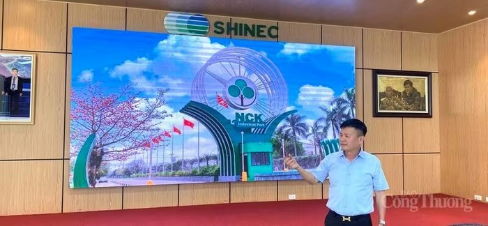 Ông Phạm Hồng Điệp, Chủ tịch Công ty cổ phần Shinec - Chủ đầu tư Khu công nghiệp Nam Cầu Kiền giới thiệu về mô hình Khu công nghiệp sinh thái tại đơn vị.