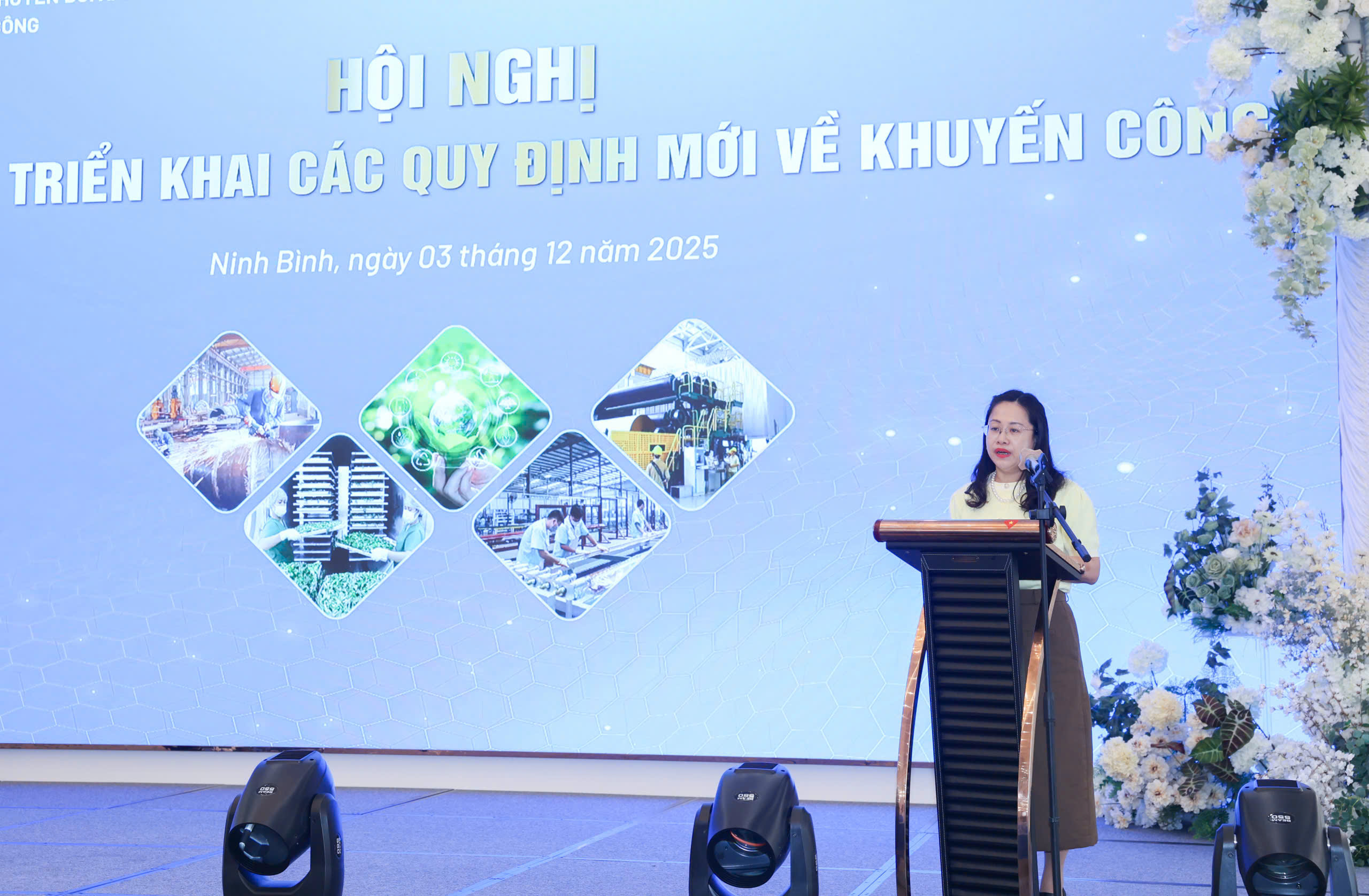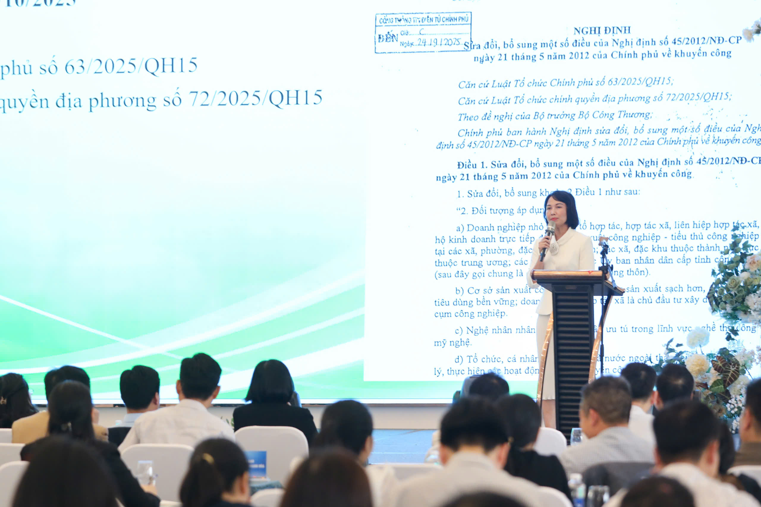 Tại Hội nghị, bà Đinh Thị Huyền Linh, Trưởng phòng Khuyến công Cục ĐCK đã trình bày nội dung phổ biến nghị định 235 và chương trình khuyến công quốc gia giai đoạn 2026-2030.