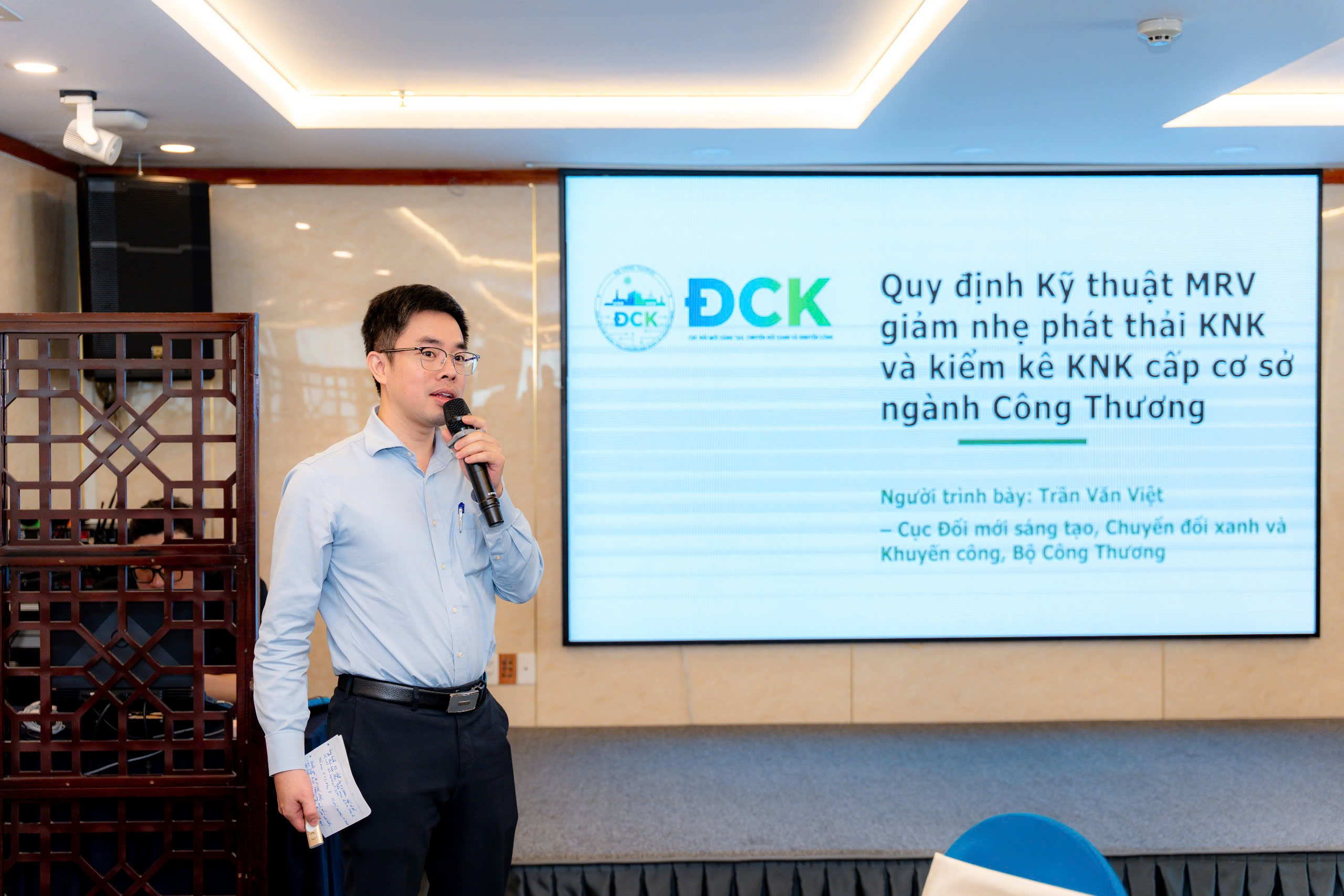 Phát biểu khai mạc hội thảo, ông Đào Duy Anh, Phó Cục trưởng Cục ĐCK, nhấn mạnh rằng biến đổi khí hậu đang là thách thức sâu sắc nhất mà thế giới phải đối mặt, tác động trực tiếp đến tăng trưởng kinh tế, an ninh năng lượng và sự bền vững của các ngành sản xuất. Việt Nam đã thể hiện quyết tâm mạnh mẽ khi cam kết đạt phát thải ròng bằng 0 vào năm 2050 tại COP26, đồng thời liên tục cập nhật, hoàn thiện hệ thống pháp luật để đáp ứng yêu cầu triển khai thực tế. Trong đó, Nghị định 119/2025/NĐ-CP vừa được Chính phủ ban hành, sửa đổi và bổ sung một số điều Nghị định 06/2022/NĐ-CP, đã đưa ra các quy định mới quan trọng về giảm phát thải và kiểm kê khí nhà kính, tăng cường trách nhiệm của các bộ, ngành, địa phương và doanh nghiệp. Riêng với ngành Công Thương, Bộ Công Thương đã ban hành Thông tư 38/2023/TT-BCT, hướng dẫn quy trình kỹ thuật đo đạc, báo cáo, thẩm định và thực hiện kiểm kê khí nhà kính tại các cơ sở sản xuất thuộc phạm vi quản lý.