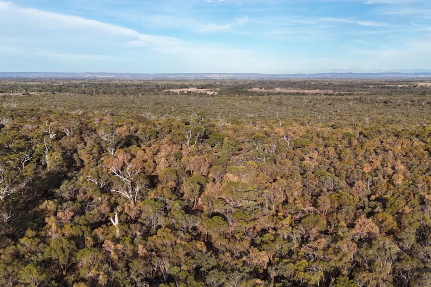 Khu rừng rộng lớn có dấu hiệu bị úa vàng tại đầm lầy Paganoni ở Karnup, Australia. Ảnh: ABC