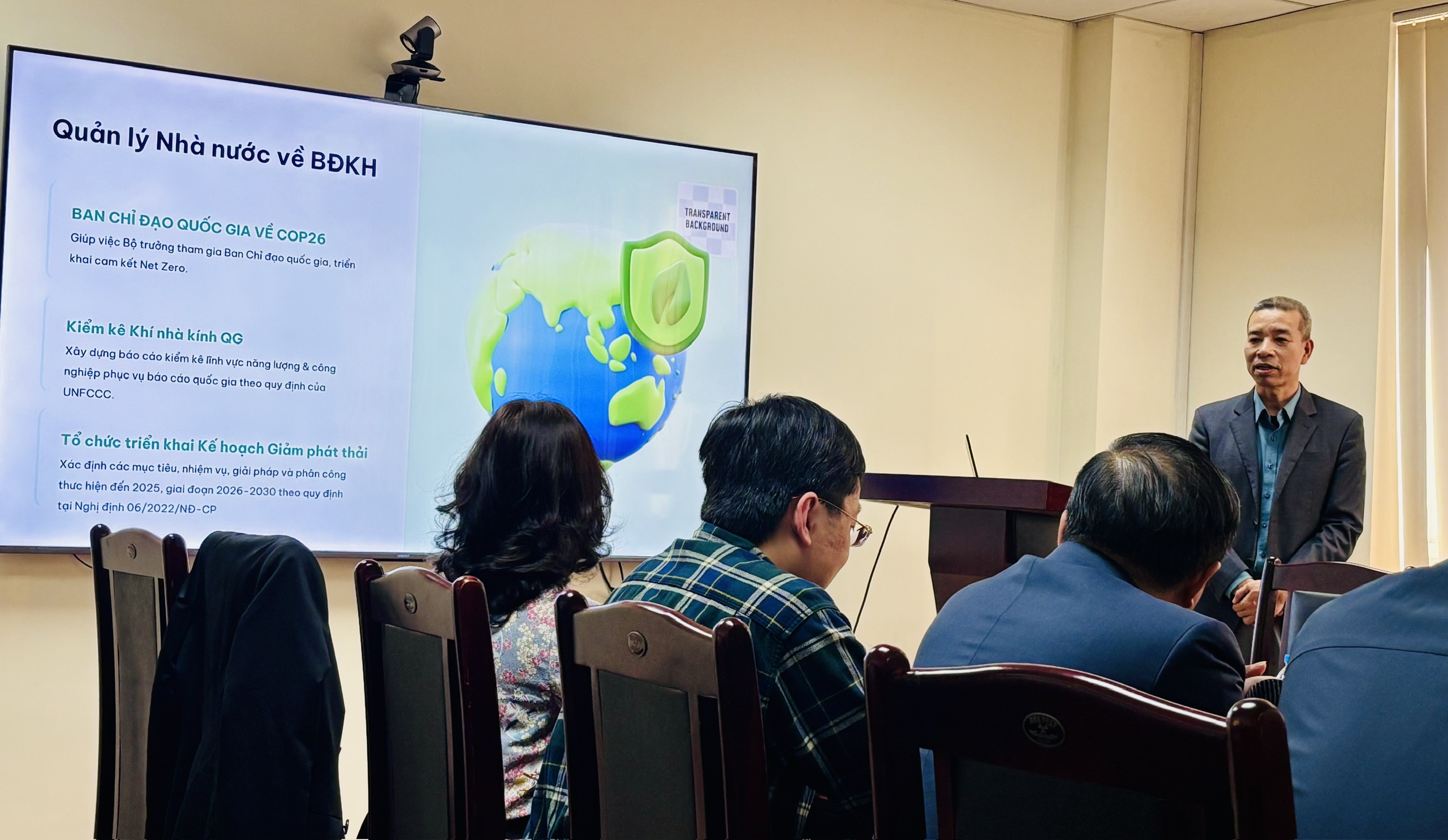 Trong lĩnh vực biến đổi khí hậu và tăng trưởng xanh, Phòng TH đã tích cực tham gia triển khai các nhiệm vụ liên quan đến giảm nhẹ phát thải khí nhà kính; tham gia xây dựng các cơ chế, chính sách về thị trường carbon; tổ chức các hoạt động đào tạo, tập huấn nâng cao năng lực cho doanh nghiệp và địa phương trong kiểm kê, đo đạc, báo cáo phát thải khí nhà kính; chuẩn bị nội dung phục vụ Lãnh đạo Bộ tham gia các hoạt động của Ban Chỉ đạo quốc gia về COP26.