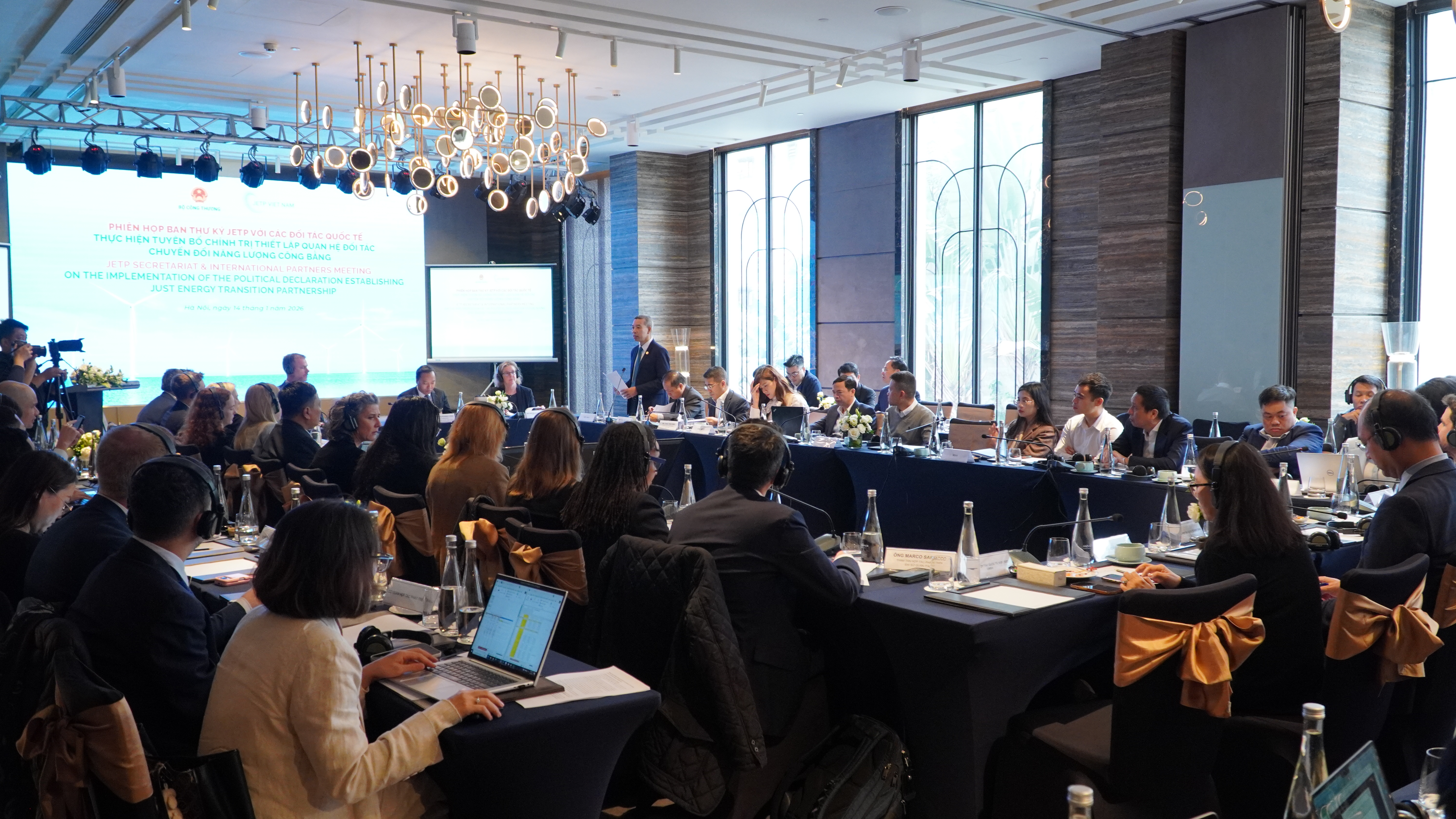 Ngày 14 tháng 01 năm 2026, tại Hà Nội, Ban Thư ký thực hiện Tuyên bố Chính trị thiết lập Quan hệ Đối tác Chuyển đổi năng lượng công bằng (JETP) đã tổ chức cuộc họp với Nhóm các đối tác quốc tế (IPG), Liên minh tài chính Glasgow vì mục tiêu phát thải ròng bằng “0” (GFANZ), UNDP - Cơ quan hỗ trợ Ban Thư ký JETP và các đối tác phát triển nhằm cập nhật tình hình triển khai JETP trong thời giai đoạn vừa qua và trao đổi về kế hoạch triển khai năm 2026.