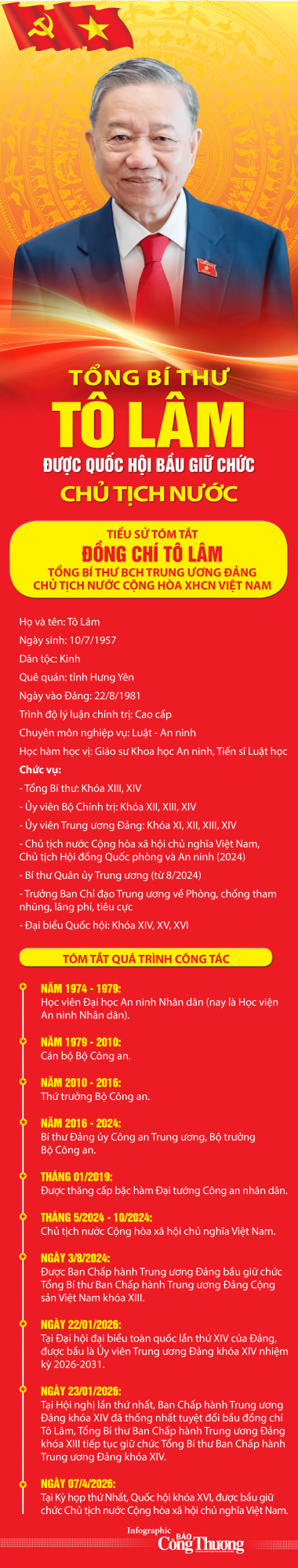 Cổng Thông tin điện tử Bộ Công Thương trân trọng giới thiệu tóm tắt tiểu sử của Tổng Bí thư, Chủ tịch nước Tô Lâm: