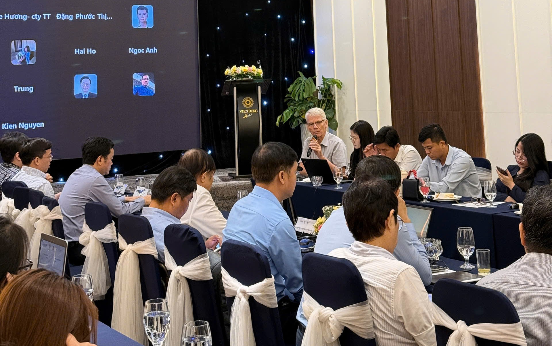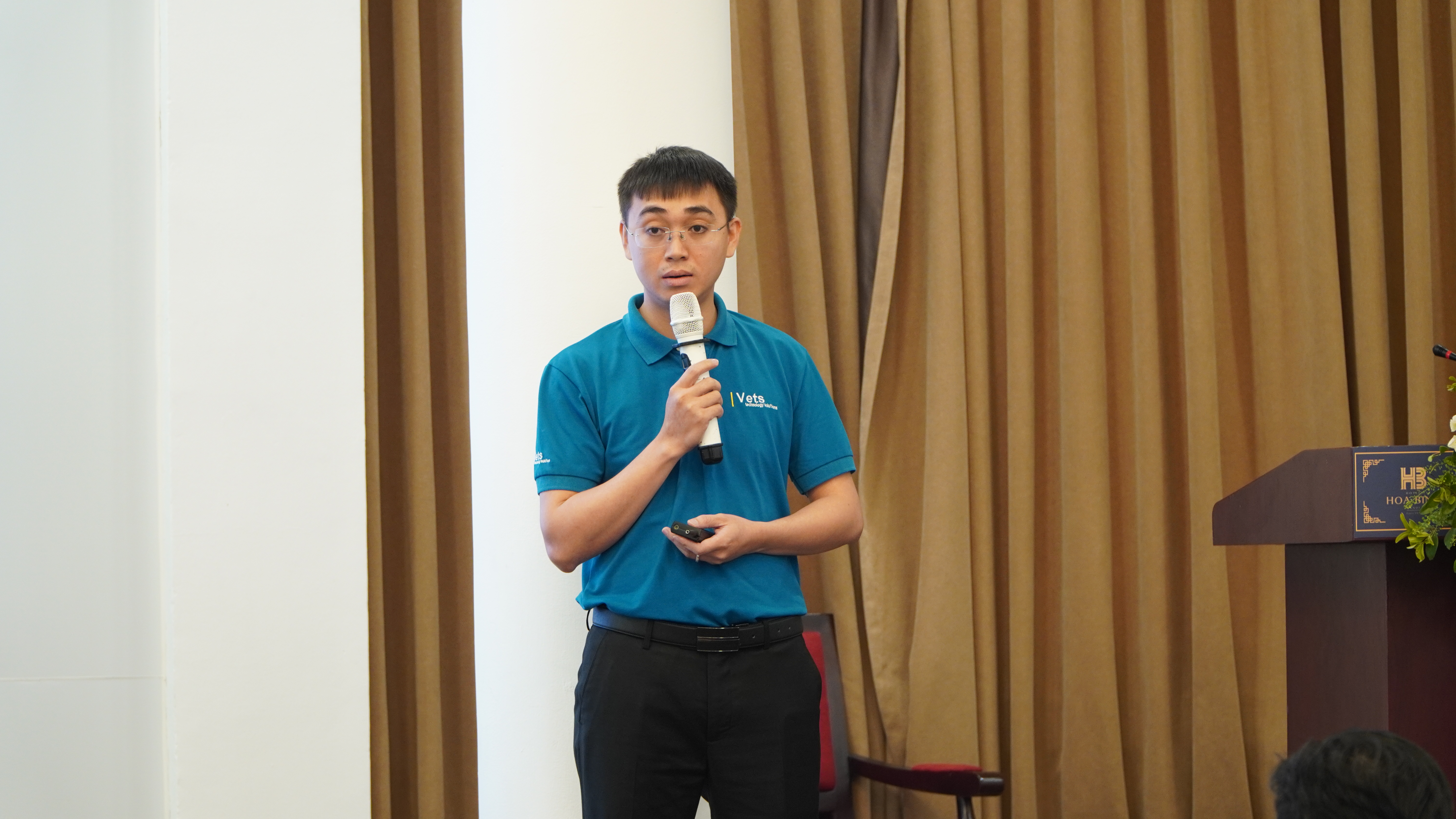 Ông Dương Chí Công - đại diện Công ty Cổ phần Giải pháp công nghệ Việt Nam (VETS) trình bày tại hội thảo.